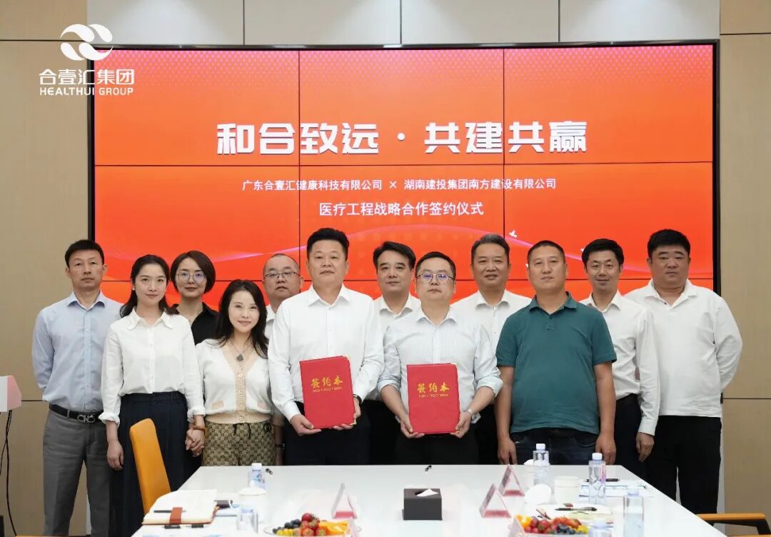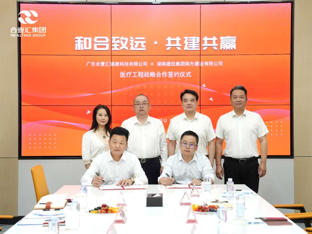 在双方高管的见证下,仪式进入核心的签约环节。合壹汇集团副总裁、广东壹谷大健康科技有限公司副总经理万文景与湖南建投集团南方建设有限公司总经理助理薛海龙作为代表,共同签署了《医疗工程战略合作协议》。