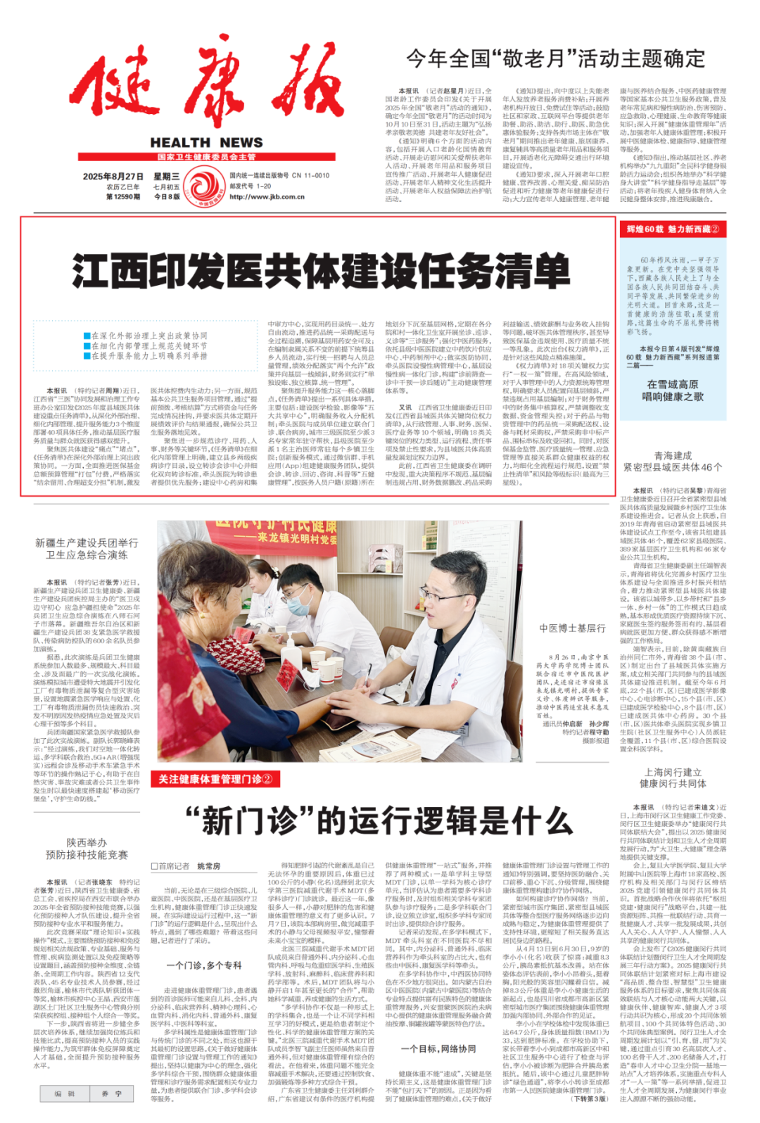 2025年8月27日,《健康报》头版头条聚焦江西县域医共体建设,报道了由省“三医”协同发展和治理工作专班办公室印发的《2025年度县域医共体建设重点任务清单》。这份清单从深化外部治理、细化内部管理、提升服务能力三大维度,部署40项具体任务,直指基层医疗“痛点”“堵点”,剑指医疗服务质量与群众就医获得感双提升,为县域医疗改革划出清晰路线图。